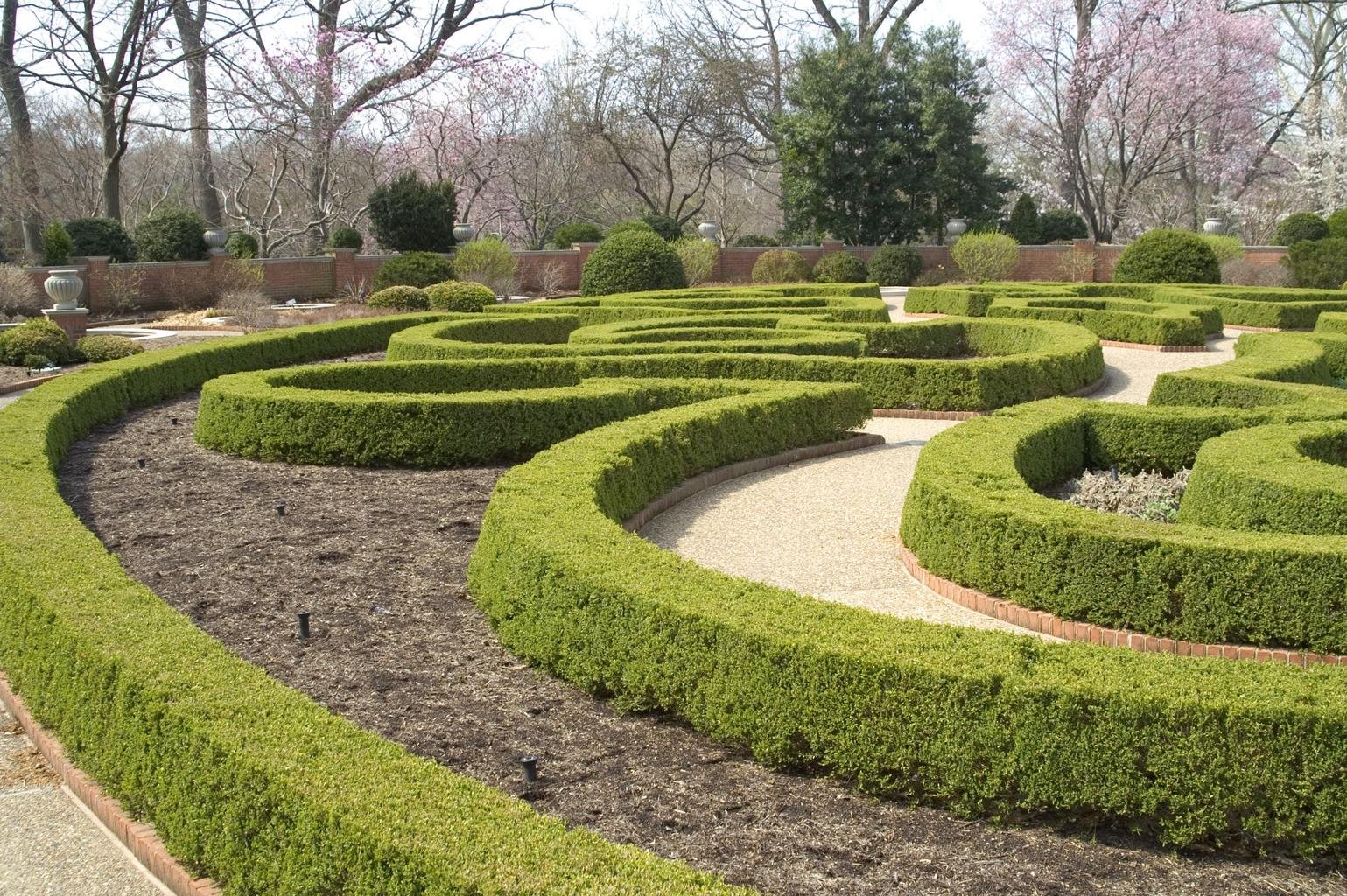 Repeat boxwoods along multiple paths